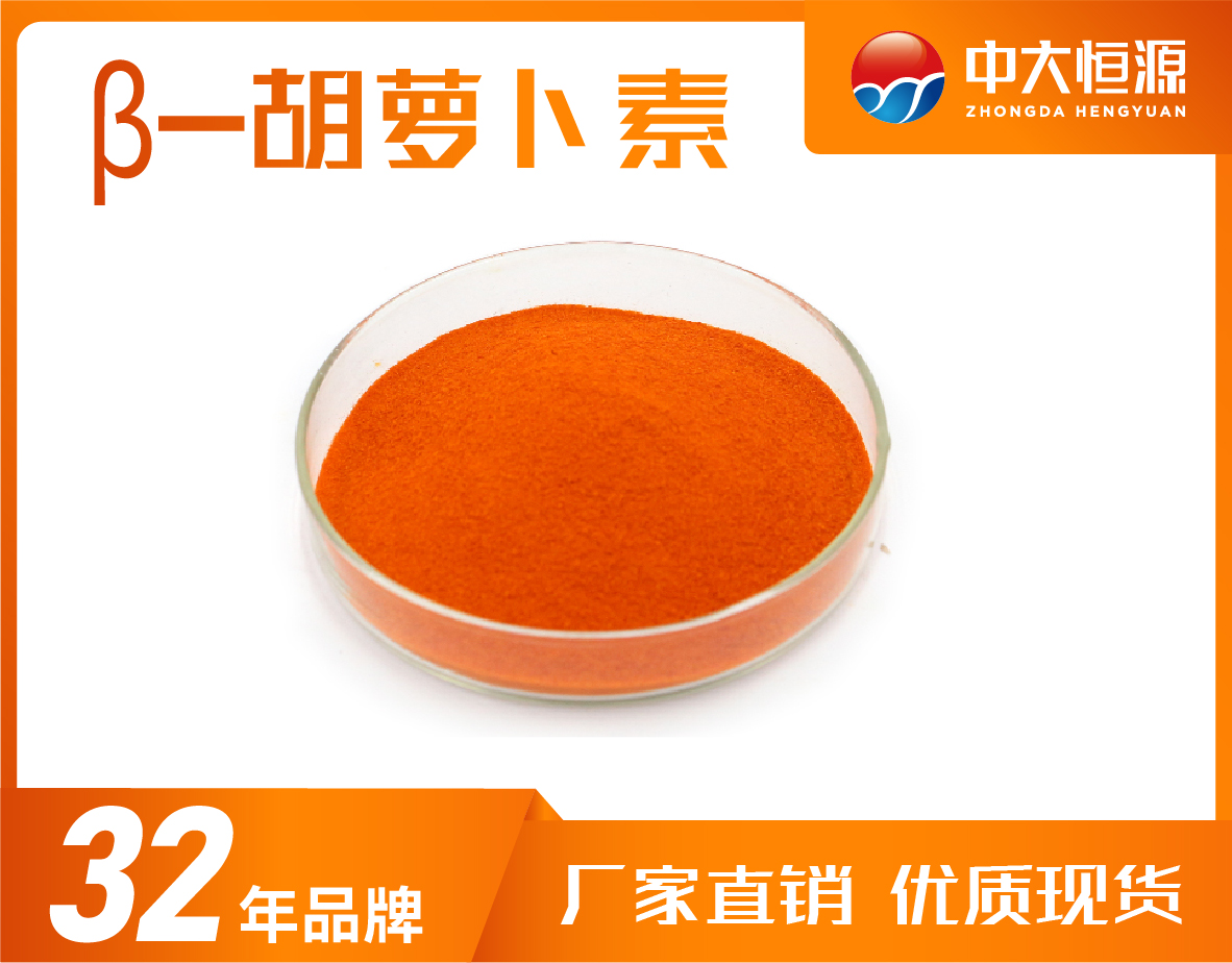理化性質:β-胡蘿卜素為紫紅色至紅色結晶性粉末,無異味;微溶于油,溶于己烷等有機溶劑;光、熱穩定性好;在pH值3.0—10.0之間穩定 。